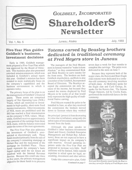 Shareholder Newsletters November 1989 Vol. 1 Num. 9October 1989 Vol. 1 Num. 8September 1989 Vol. 1 Num. 7August 1989 Vol. 1 Num. 6July 1989 Vol. 1 Num. 5June 1989 Vol. 1 Num. 4